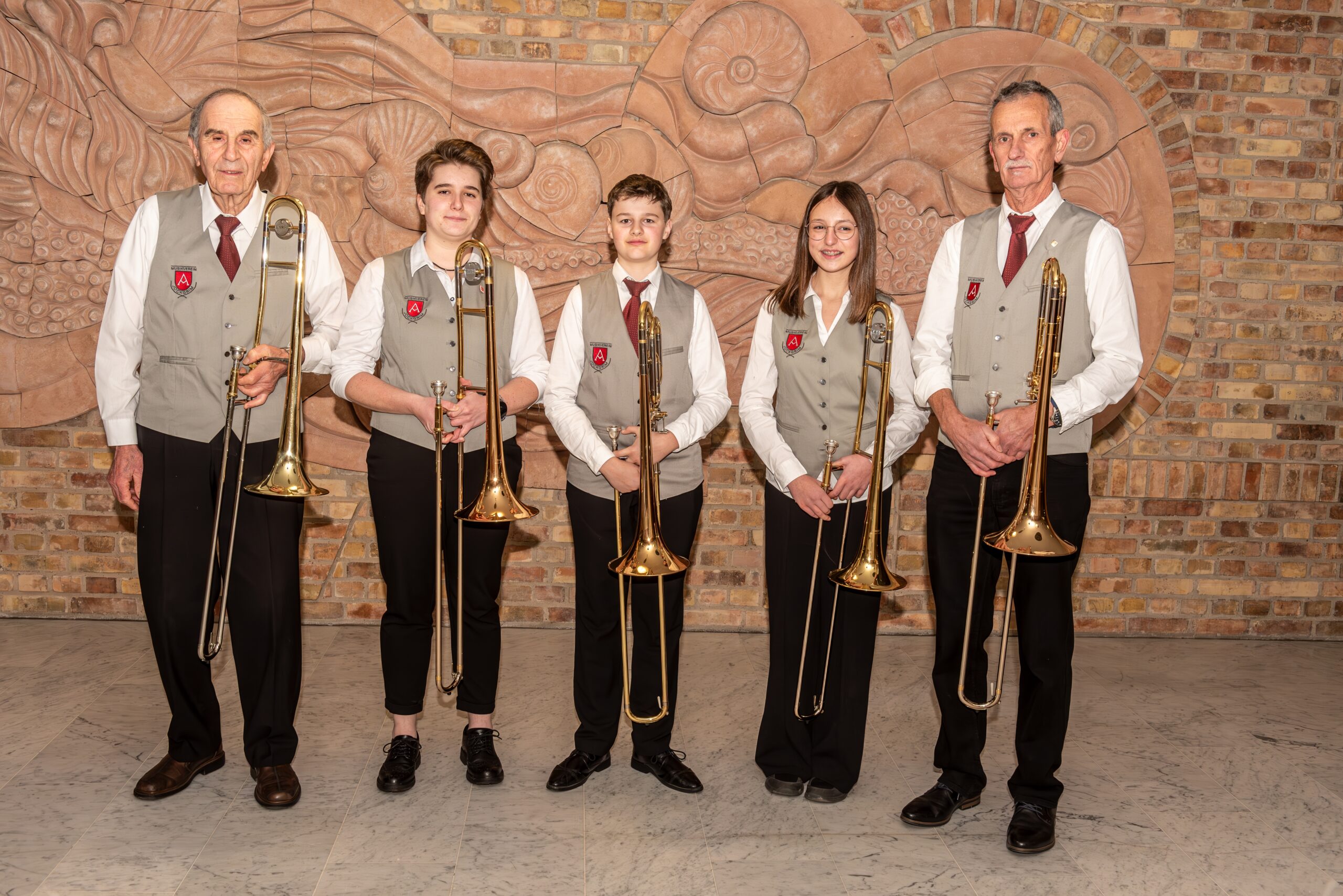 Posaunen v.l.n.r Karl-Heinz-Schwein, Sina Leicht, Valentin Steiner, Franziska Rapp, Klaus FischerEs fehlt: Thomas Lasarzewski